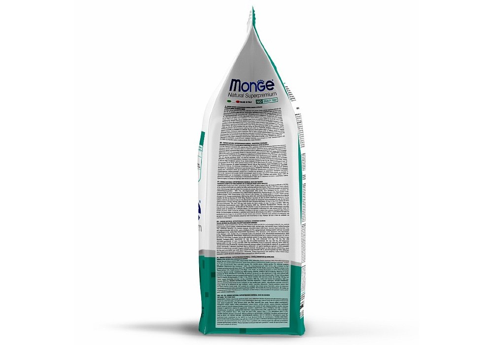 Курица (дегидрированная 26%, свежая 10%), кукуруза, животный жир (куриный жир 99,6%, консервированный с помощью натуральных антиоксидантов), рис, сухая свекольная пульпа, кукурузная глютеновая мука, гидролизованный животный белок, яичный порошок (с высоким содержанием полноценного белка), рыба (дегидрированный лосось), рыбий жир (масло лосося), пивные дрожжи (источник МОС и витамина В12), нерастворимые волокна гороха, таурин, КОС (ксилоолигосахариды 3 к/кг), гидролизованные дрожжи (МОС), юкка Шидигера, шиповник.