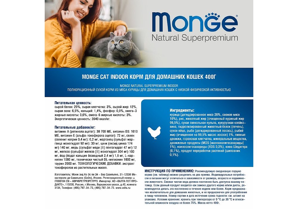 Рекомендации по кормлению: не ограничивайте количество корма. Кошка будет съедать столько корма, сколько необходимо для поддержания оптимального веса. При избыточном весе и/или наличии других проблем, рекомендуется ограничивать суточную норму корма в соответствии с рекомендациями ветеринарного врача и/или следовать приведенной на упаковке таблице. ВАЖНО, чтобы животное всегда имело доступ к чистой, свежей воде.
