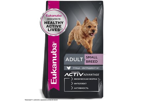 Корм сухой полнорационный для взрослых собак мелких пород с птицей ADULT SMALL BREED 1+ YEARS (ЭДАЛТ СМОЛ БРИД 1+ ЛЕТ) EUKANUBA®, подходящий для собак с повышенной активностью, в возрасте от 1 года, специально разработан с учетом потребностей вашей активной собаки