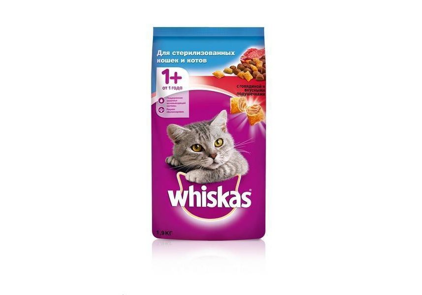 Это сбалансированный рацион для здоровой и счастливой жизни Вашей кошки. Хрустящие подушечки с нежным паштетом внутри обязательно придутся по вкусу Вашей любимице. Кроме того, Whiskas содержит все необходимое, чтобы еда Вашей кошки была не только вкусной, но и полезной.