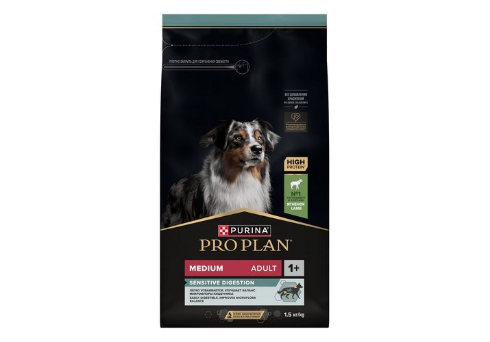 Изучая потребности собак на протяжении многих лет, команда квалифицированных ветеринарных специалистов и диетологов PURINA разработала сухой корм PRO PLAN® Sensitive digestion (для чувствительного пищеварения) — ежедневный рацион с высоким содержанием ягненка для взрослых собак средних пород. Этот полнорационный корм сбалансирован по составу и помогает поддержать здоровое пищеварение.