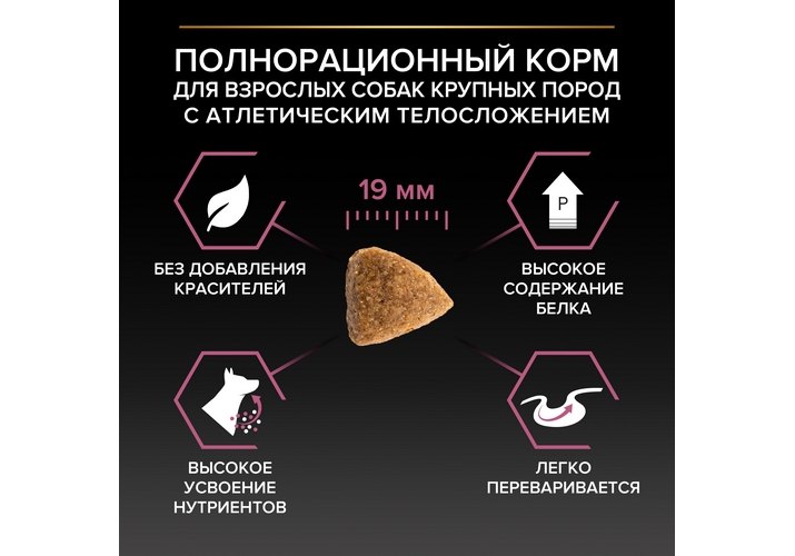 • Специальная рецептура для собак с атлетическим телосложением помогает поддерживать здоровье суставов вашей собаки при активном образе жизни.