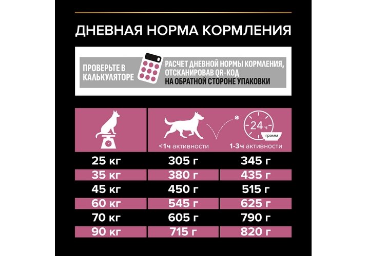 Используйте таблицу для определения суточной нормы кормления вашей собаки. Указанные нормы рекомендованы для поддержания собаки в оптимальной физической форме. Меняйте суточную норму кормления в зависимости от уровня активности собаки, ее физических особенностей и индивидуальных потребностей. Следите, чтобы у собаки всегда была чистая, свежая питьевая вода. Для контроля здоровья вашей собаки обращайтесь в ветеринарную клинику на регулярной основе.