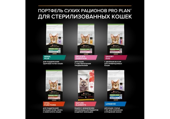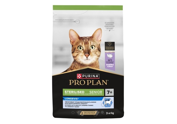 Корм сухой для кошек старше 7 лет PRO PLAN® Sterilised LONGEVIS® (Формула LONGEVIS® для увеличения продолжительности жизни) — это полюбившийся PRO PLAN® STERILISED Senior с прежним составом и качеством .
