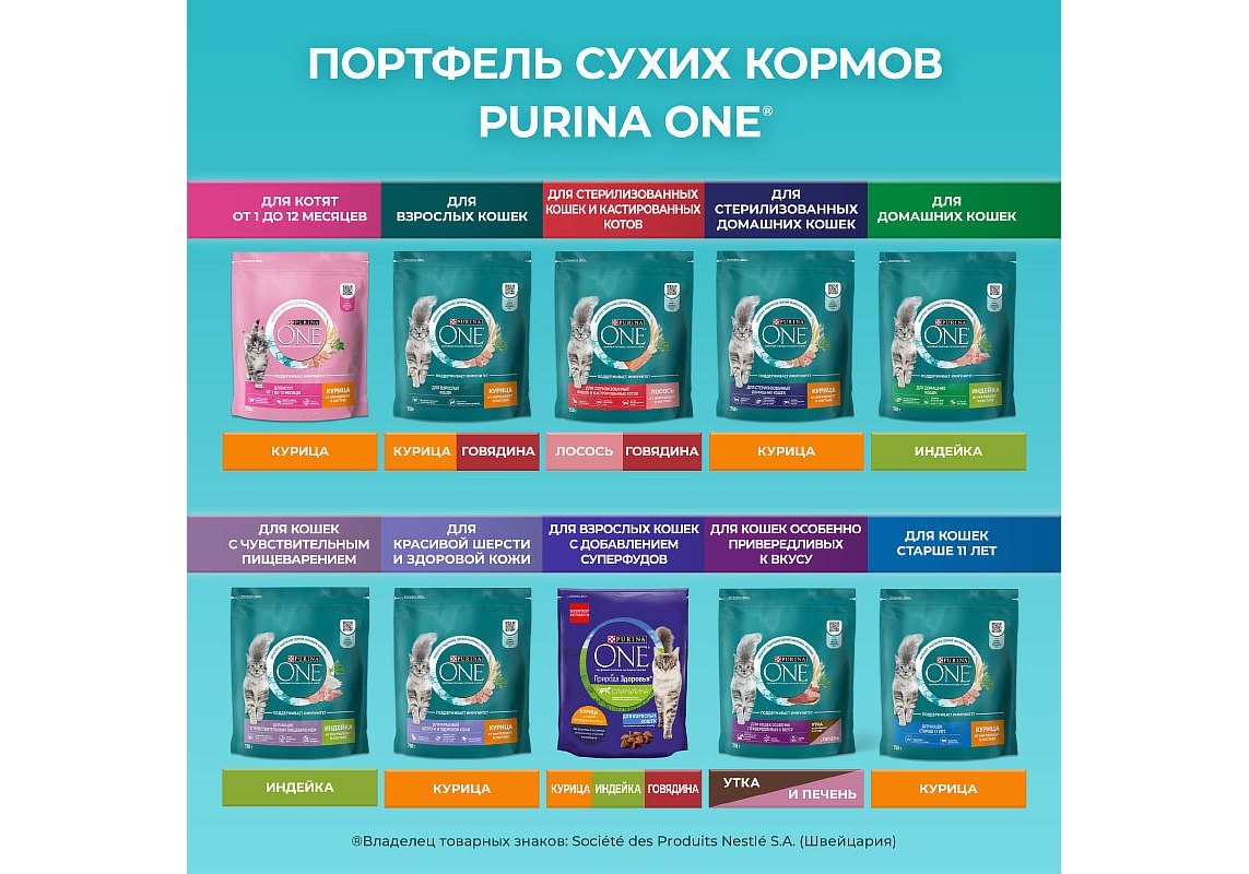 Бренд PURINA ONE® предлагает широкий ассортимент кормов для кошек и собак, который учитывает уникальные потребности домашних животных. Разработанные ветеринарами и диетологами рационы Purina ONE® содержат всё необходимое для роста и развития вашего питомца: