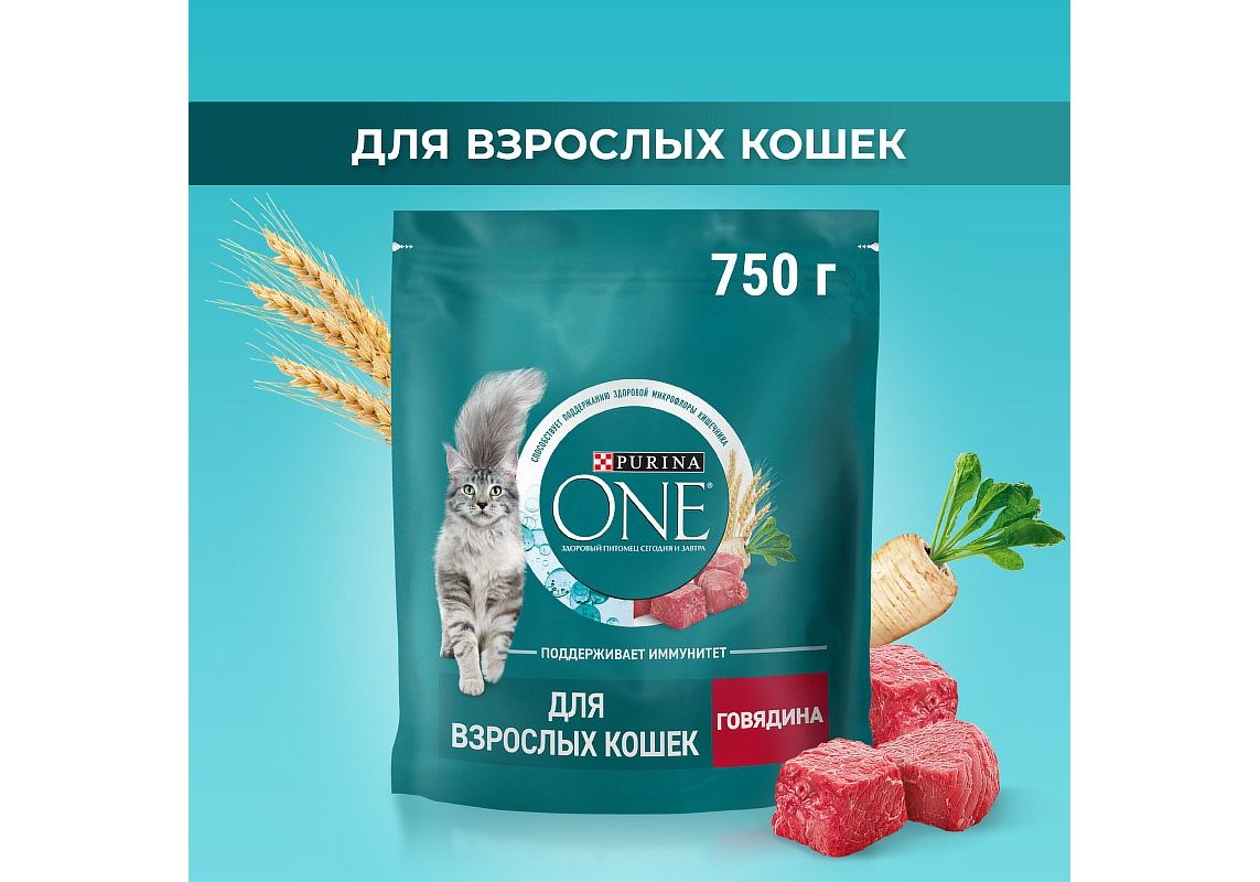 Корм Purina ONE® с говядиной для взрослых кошек 750 г — это: