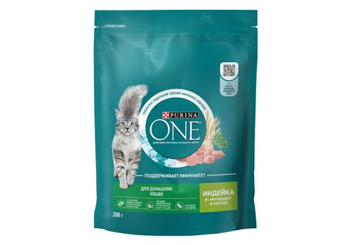 Корм Purina ONE® с индейкой для взрослых домашних кошек 200 г — это: