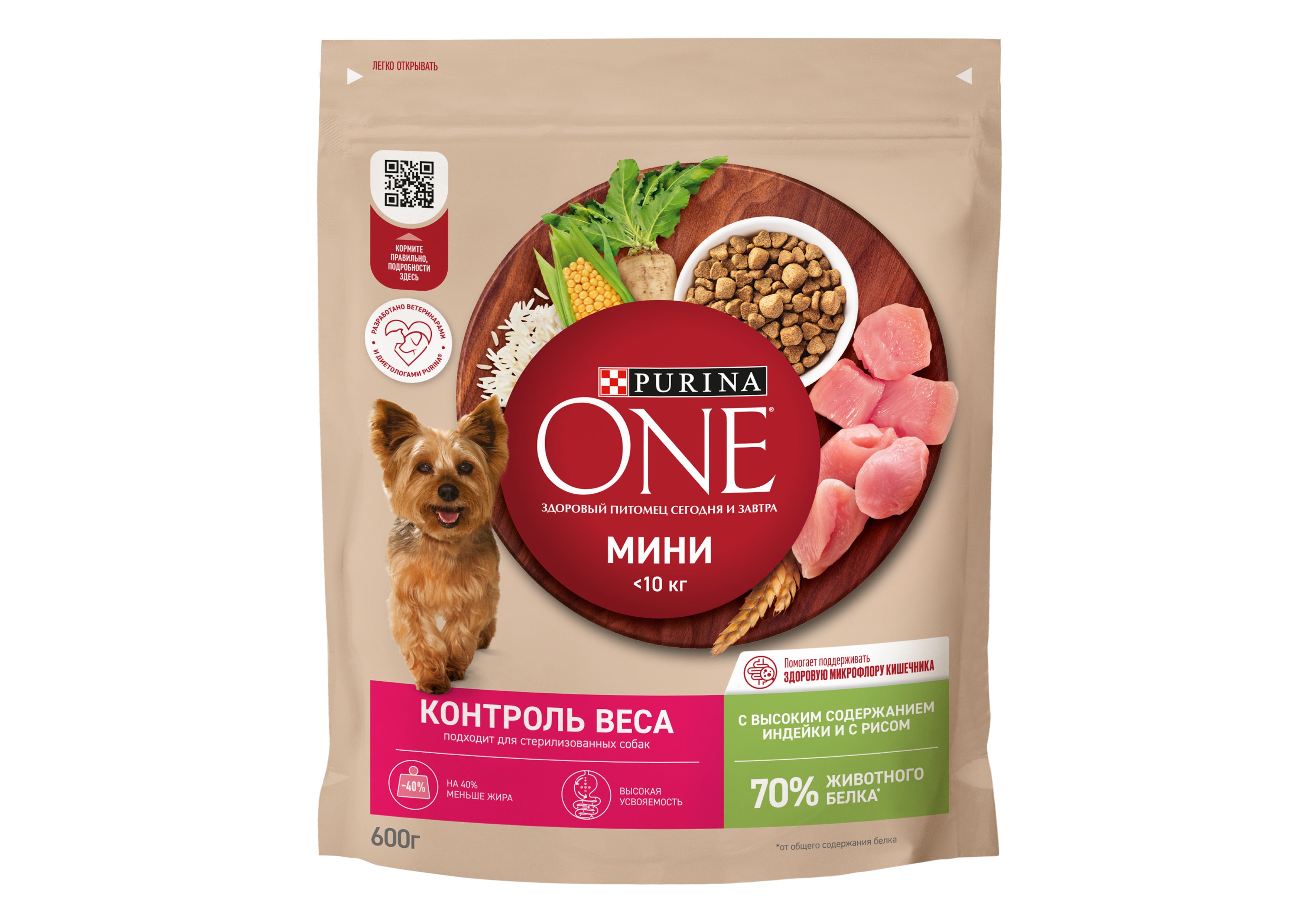 Сухой корм для собак мелких пород Purina ONE® с высоким содержанием индейки и с рисом 600 г — это: