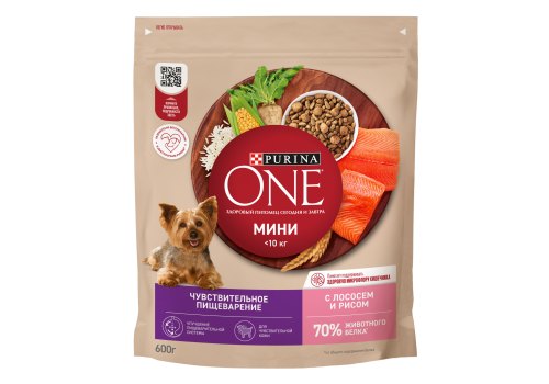 Сухой корм для собак мелких пород Purina ONE® с лососем и рисом 600 г — это: