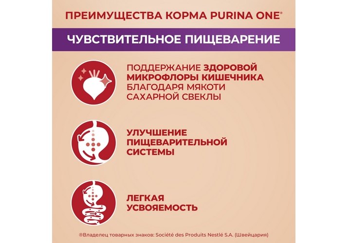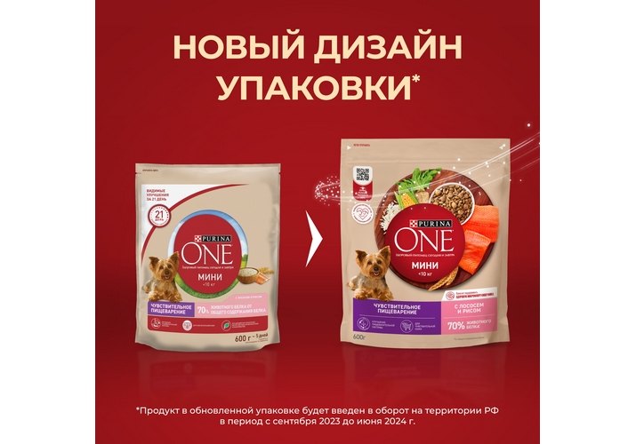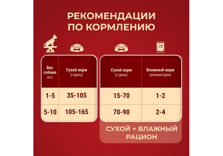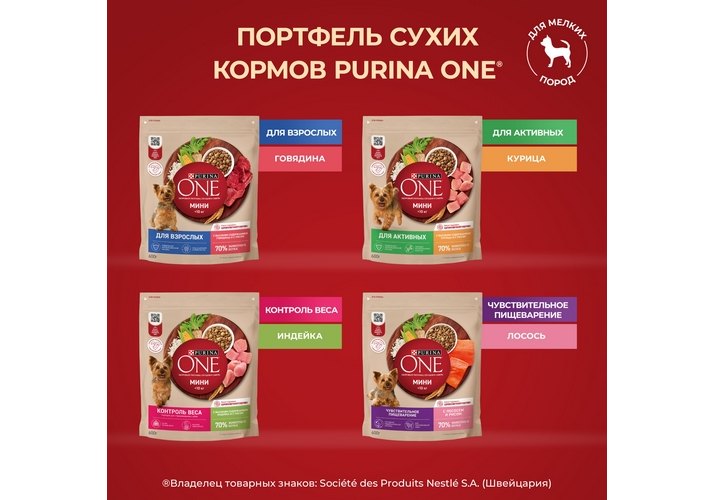 *Для достижения максимального результата рекомендуем комбинировать одинаковый тип корма Purina ONE® (Пурина Уан) Мини (например: сухой корм Purina ONE® (Пурина Уан) Мини Чувствительная и влажный корм Purina ONE® (Пурина Уан) Мини Чувствительная, для собак мелких пород, с чувствительным пищеварением).