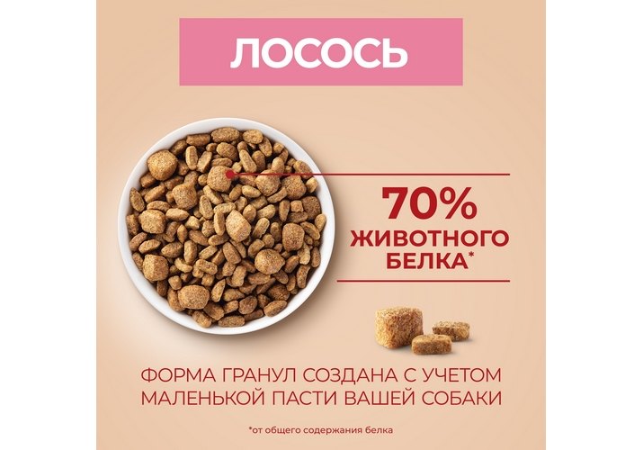 • Сочетание вкусных хрустящих крокетов и мягких кусочков**, созданных специально с учетом маленькой пасти вашей собаки