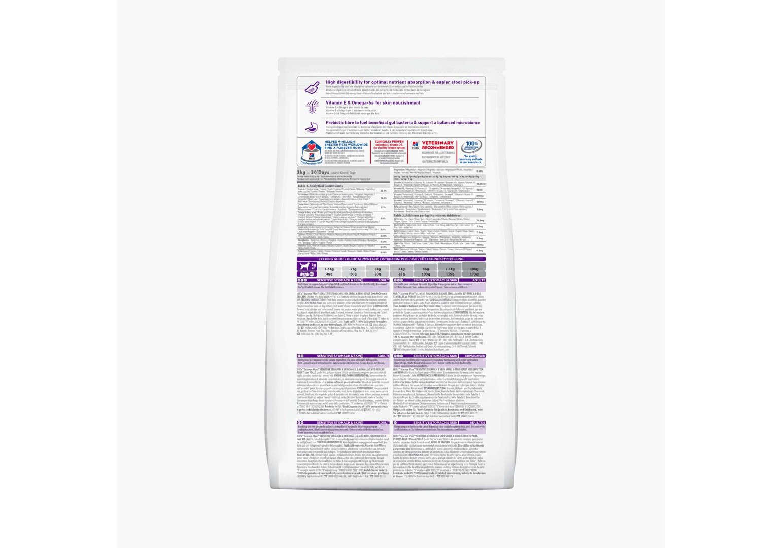 Корм для взрослых собак с чувствительным пищеварением и кожей Hill's Science Plan с курицей поддерживает здоровье пищеварительной системы с помощью пребиотической клетчатки и способствует красивой шерсти собак мелких пород.