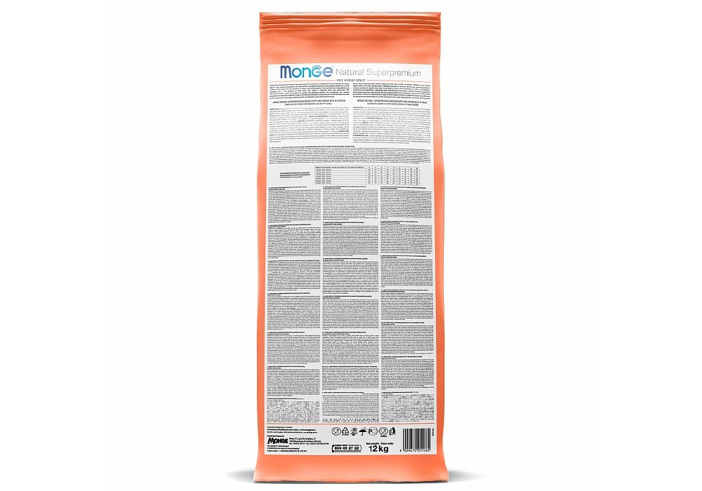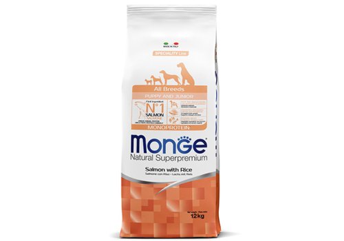 Monge Dog Monoprotein Puppy & Junior Salmon with rice Сухой корм Монж для Щенков всех пород Лосось с рисом 12 кг