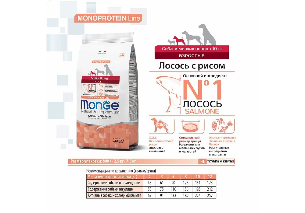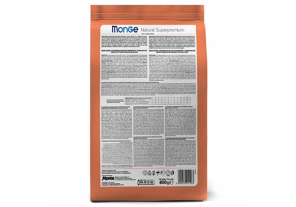 Monge Dog Monoprotein Speciality Mini Salmon & Rice Сухой корм Монж для взрослых собак Мелких пород Лосось с рисом 800 г