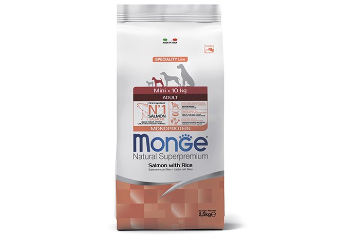 Monge Dog Monoprotein Speciality Mini Salmon & Rice Сухой корм Монж для взрослых собак Мелких пород Лосось с рисом 2,5 кг
