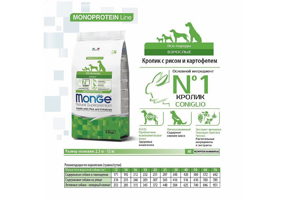 Monge Dog Monoprotein Speciality Adult Rabbit & Rice Сухой корм Монж для взрослых собак всех пород Кролик с рисом и картофелем 2,5 кг