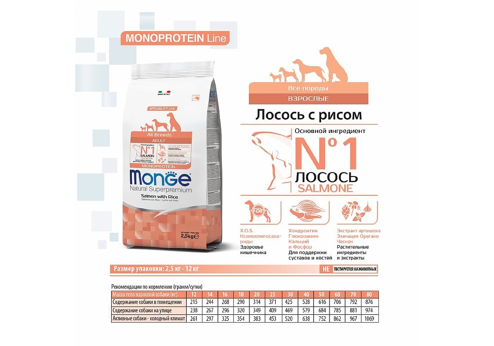 Monge Dog Monoprotein Speciality Adult Salmon & Rice Сухой корм Монж для взрослых собак всех пород Лосось с рисом 12 кг
