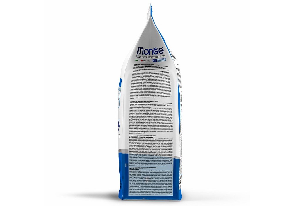 Рис, кукурузная глютеновая мука, курица (дегидрированная 18%, свежая 5%), рыба (дегидрированный лосось), животный жир (куриный жир 99,6%, консервированный с помощью натуральных антиоксидантов), овес, гидролизированный животный белок, дегидрированный горох, яичный порошок (с высоким содержанием полноценного белка), рыбий жир (масло лосося), таурин, КОС (ксилоолигосахариды 3г/кг), гидрализованные дрожжи (МОС), юкка Шидигера.