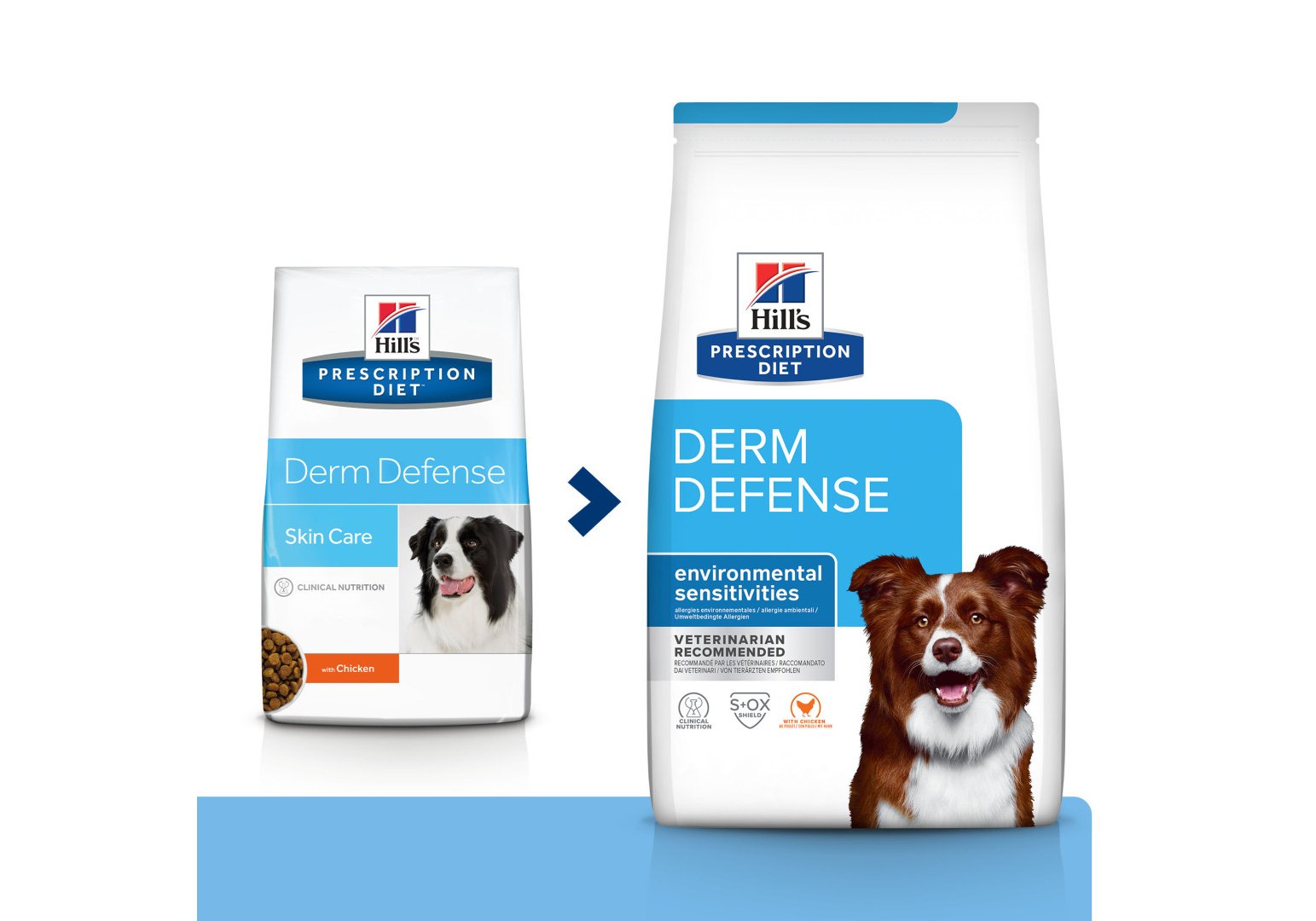 Hill's Prescription Diet Derm Defense Dog – полноценный диетический корм для поддержания функции кожи при дерматитах или избыточной потере шерсти у взрослых собак. корм содержит повышенный уровень незаменимых жирных кислот.
