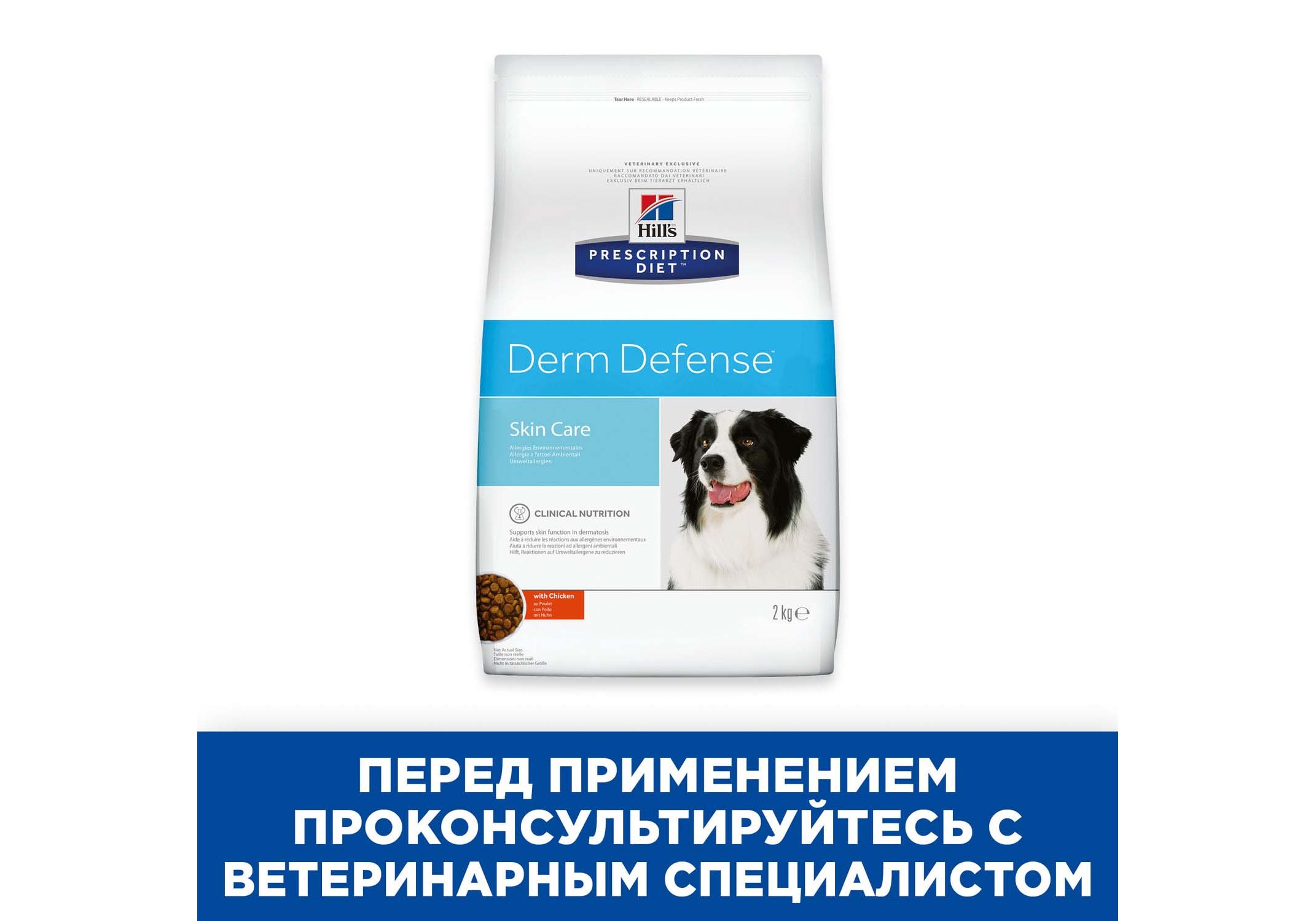 Hills Prescription Diet Canine Derm Defense Лечебный корм Хиллс Дерм Дефенс для взрослых собак для поддержания Кожи при Дерматитах или избыточной потери шерсти Курица 1,5 кг