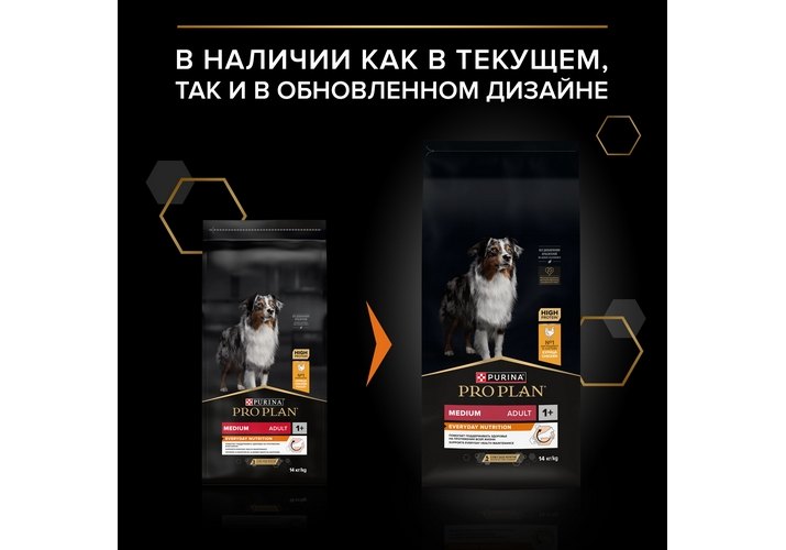 Изучая потребности собак на протяжении многих лет, команда квалифицированных ветеринарных специалистов и диетологов PURINA разработала сухой корм PRO PLAN® Everyday Nutrition — ежедневный рацион с высоким содержанием курицы для взрослых собак средних пород. Этот полнорационный корм сбалансирован по составу и помогает поддерживать здоровье вашей собаки на протяжении всей жизни.