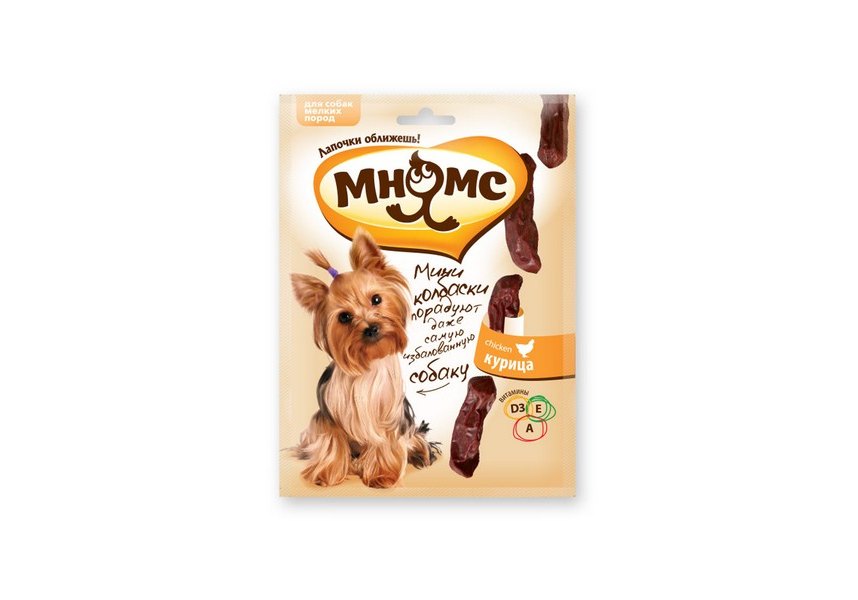 Мнямс мини-колбаски с курицей для собак мелких пород.
