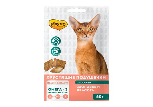 Мнямс Лакомство для кошек Хрустящие подушечки Здоровье и Красота (Лосось) 60 г