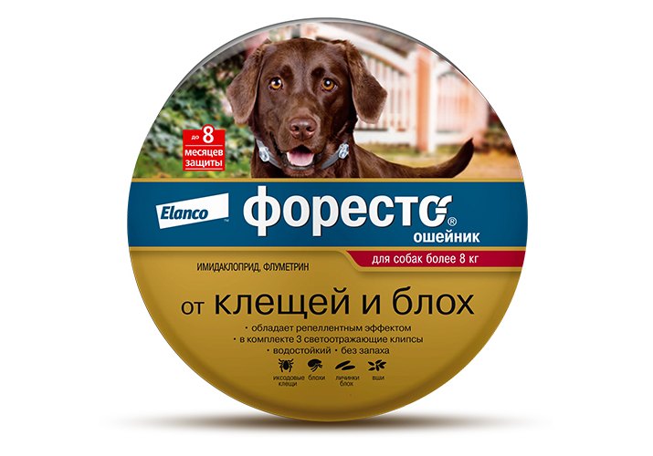 Elanco Форесто Ошейник от Клещей, Блох и Вшей для собак весом более 8 кг 70 см
