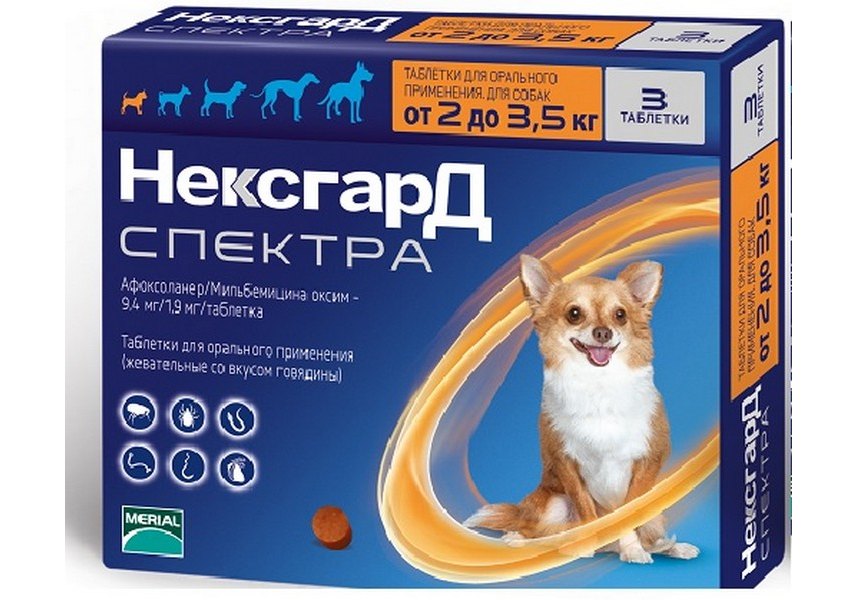 Merial Фронтлайн НексгарД Спектра Таблетки жевательные для собак весом 2 - 3,5 кг 1 х 3 шт
