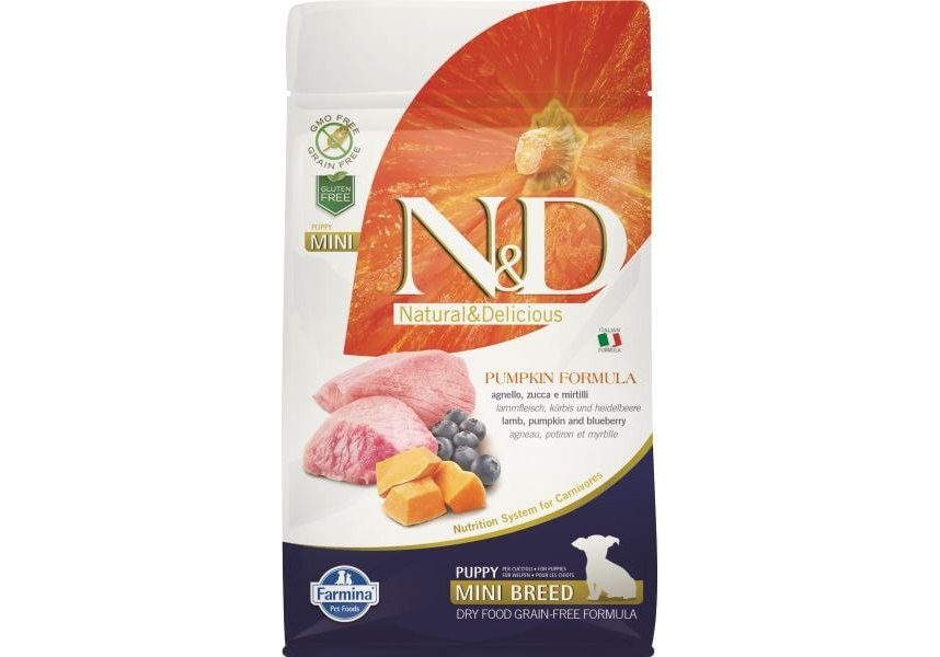 Farmina N&D Pumpkin Line Puppy Mini Pumpkin Lamb & Blueberry Grain free Сухой Беззерновой корм Фармина для Щенков Мелких пород Ягненок с Черникой и Тыквой 800 г