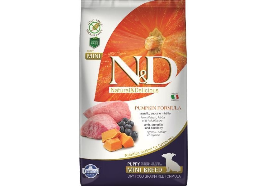 Farmina N&D Pumpkin Line Puppy Mini Pumpkin Lamb & Blueberry Grain free Сухой Беззерновой корм Фармина для Щенков Мелких пород Ягненок с Черникой и Тыквой 2,5 кг