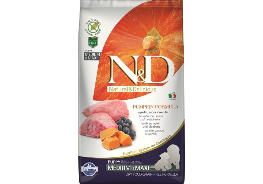 Farmina N&D Pumpkin Line Puppy Medium & Maxi Pumpkin Lamb & Blueberry Grain free Сухой Беззерновой корм Фармина для Щенков Средних и Крупных пород Ягненок с Черникой и Тыквой 2,5 кг