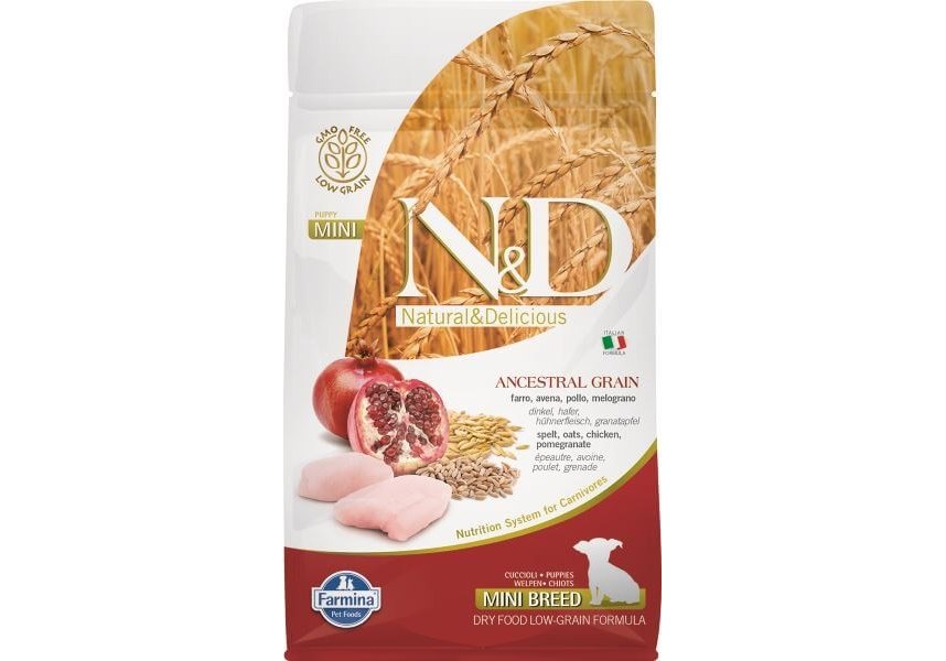 Farmina N&D Ancestral Grain Puppy Mini Chicken Spelt Oats Pomegranate Сухой Низкозерновой корм Фармина для Щенков Мелких и Карликовых пород Курица с Гранатом 800 г