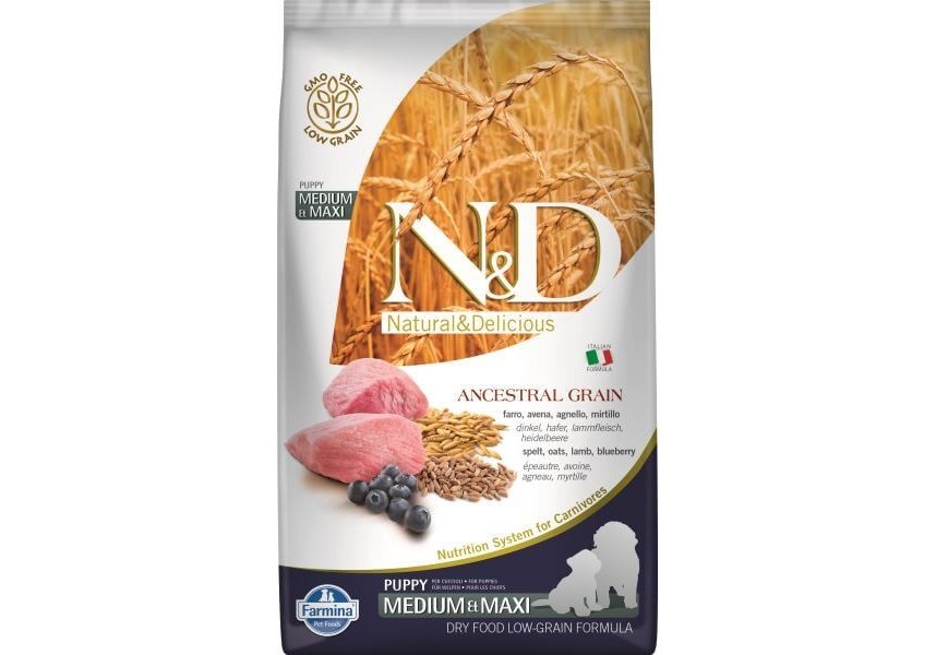 Farmina N&D Ancestral Grain Puppy Medium Maxi Lamb Spelt Oats Blueberry Сухой Низкозерновой корм Фармина для Щенков Средних и Крупных пород Ягненок с Черникой 2,5 кг