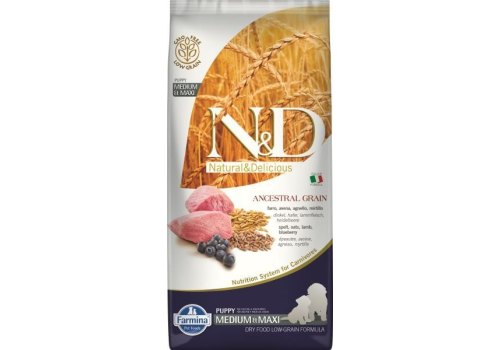 Farmina N&D Ancestral Grain Puppy Medium Maxi Lamb Spelt Oats Blueberry Сухой Низкозерновой корм Фармина для Щенков Средних и Крупных пород Ягненок с Черникой 12 кг