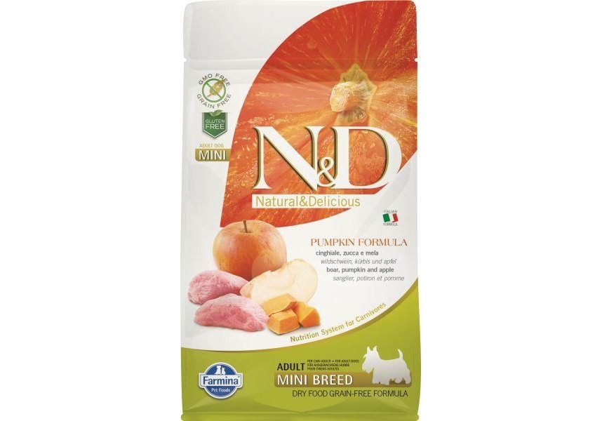 Farmina N&D Pumpkin Line Adult Mini Boar & Apple Grain free Сухой Беззерновой корм Фармина для взрослых собак Мелких пород Кабан с Яблоком и Тыквой 800 г