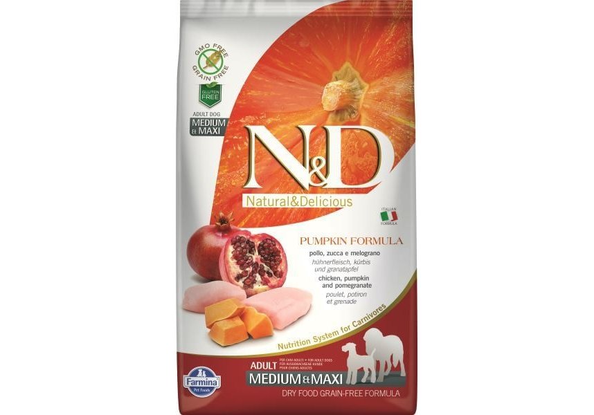 Farmina N&D Pumpkin Line Adult Medium & Maxi Chicken & Pomegranate Grain free Сухой Беззерновой корм Фармина для взрослых собак Средних и Крупных пород Курица с Гранатом и Тыквой 2,5 кг