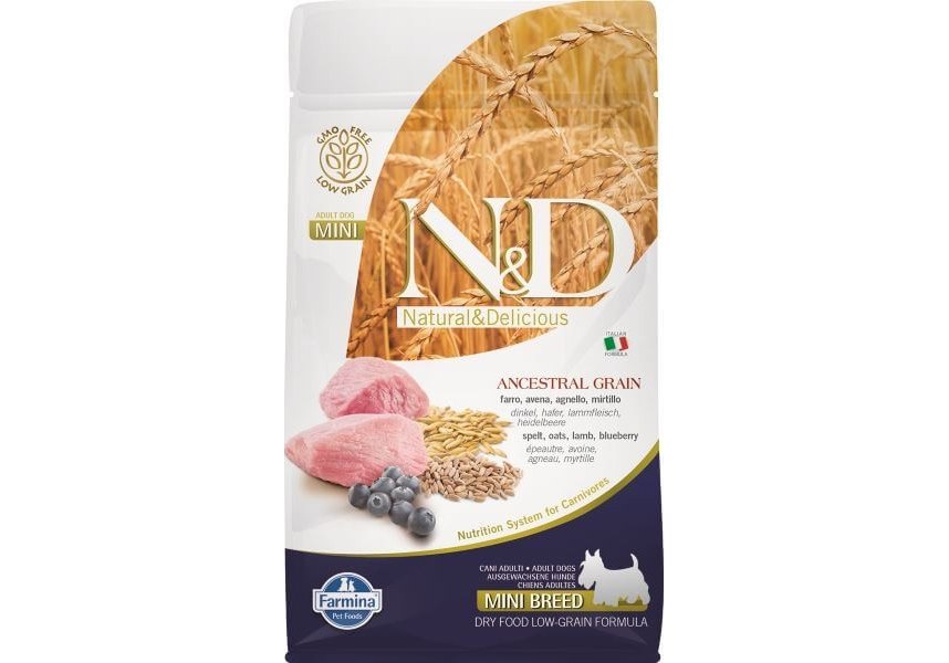 Farmina N&D Ancestral Grain Adult Mini Lamb Spelt Oats Blueberry Сухой Низкозерновой корм Фармина для взрослых собак Мелких и Карликовых пород Ягненок с Черникой 800 г