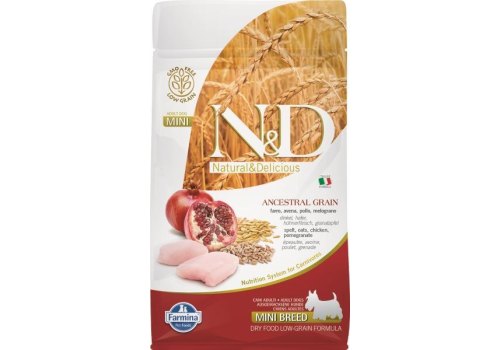 Farmina N&D Ancestral Grain Adult Mini Chicken Spelt Oats Pomegranate Сухой Низкозерновой корм Фармина для взрослых собак Мелких и Карликовых пород Курица с Гранатом 800 г
