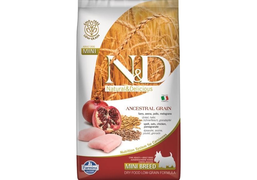 Farmina N&D Ancestral Grain Adult Mini Chicken Spelt Oats Pomegranate Сухой Низкозерновой корм Фармина для взрослых собак Мелких и Карликовых пород Курица с Гранатом 2,5 кг