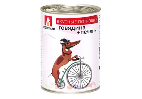 Зоогурман Влажный корм Консервы для собак Вкусные потрошки Говядина с печенью (цена за упаковку) 350г x 12шт