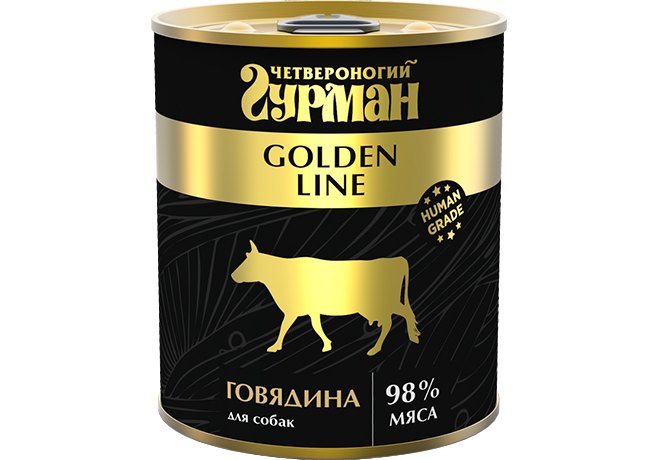 Четвероногий Гурман Golden Line Консервы Золотая линия для собак Говядина натуральная в желе (цена за упаковку) 340г х 12шт