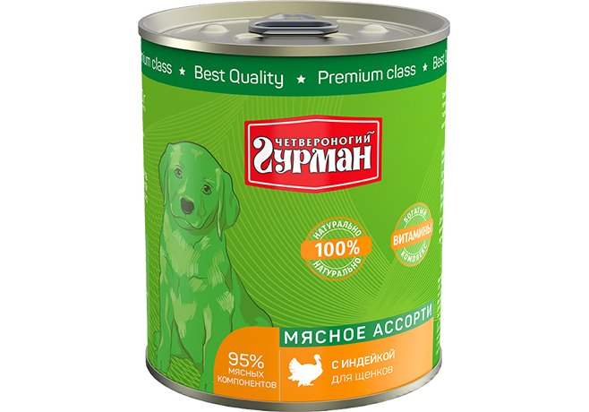 Четвероногий Гурман Мясное ассорти Консервы для Щенков с Индейкой (цена за упаковку) 340г х 6шт