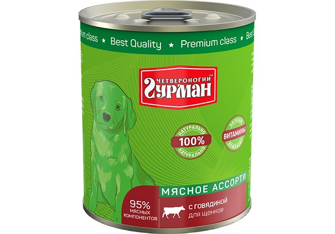 Четвероногий Гурман Мясное ассорти Консервы для Щенков с Говядиной (цена за упаковку) 340г х 12шт