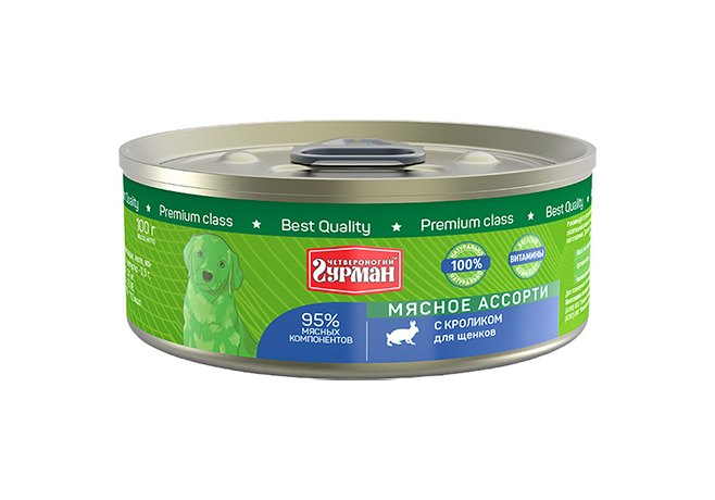 Четвероногий Гурман Мясное ассорти Консервы для Щенков с Кроликом (цена за упаковку) 100г х 6шт