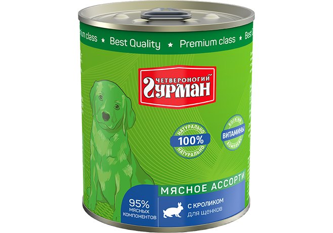 Четвероногий Гурман Мясное ассорти Консервы для Щенков с Кроликом (цена за упаковку) 340г х 12шт