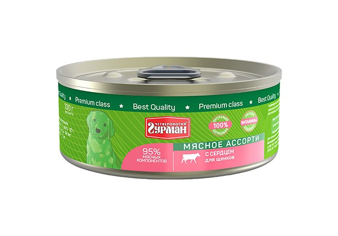 Четвероногий Гурман Мясное ассорти Консервы для Щенков с Сердцем (цена за упаковку) 100г х 24шт