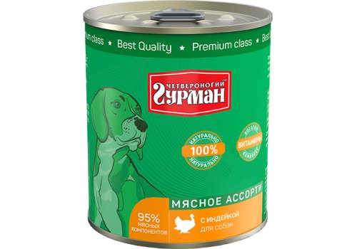 Четвероногий Гурман Мясное ассорти Консервы для собак с Индейкой (цена за упаковку) 340г x 12шт