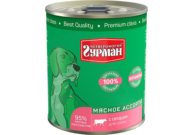 Четвероногий Гурман Мясное ассорти Консервы для собак с Сердцем (цена за упаковку) 340г x 6шт