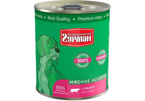 Четвероногий Гурман Мясное ассорти Консервы для собак с Языком (цена за упаковку) 100г x 6шт